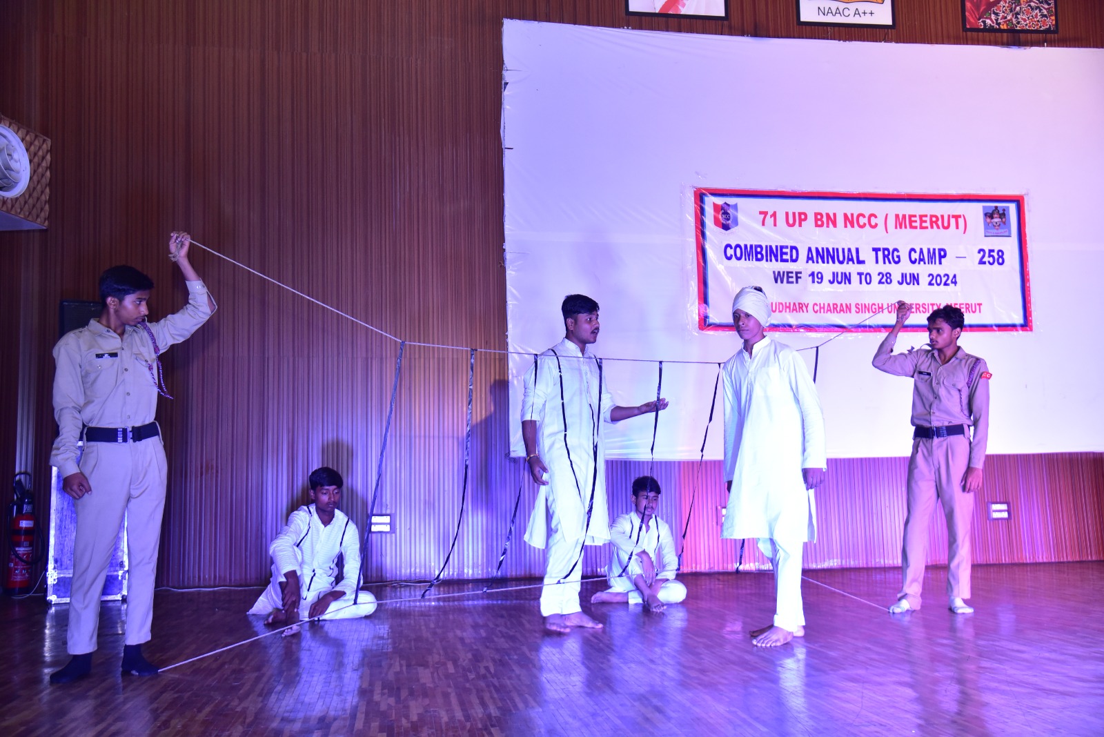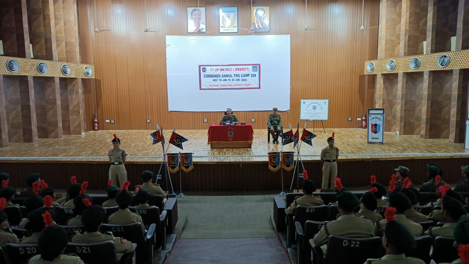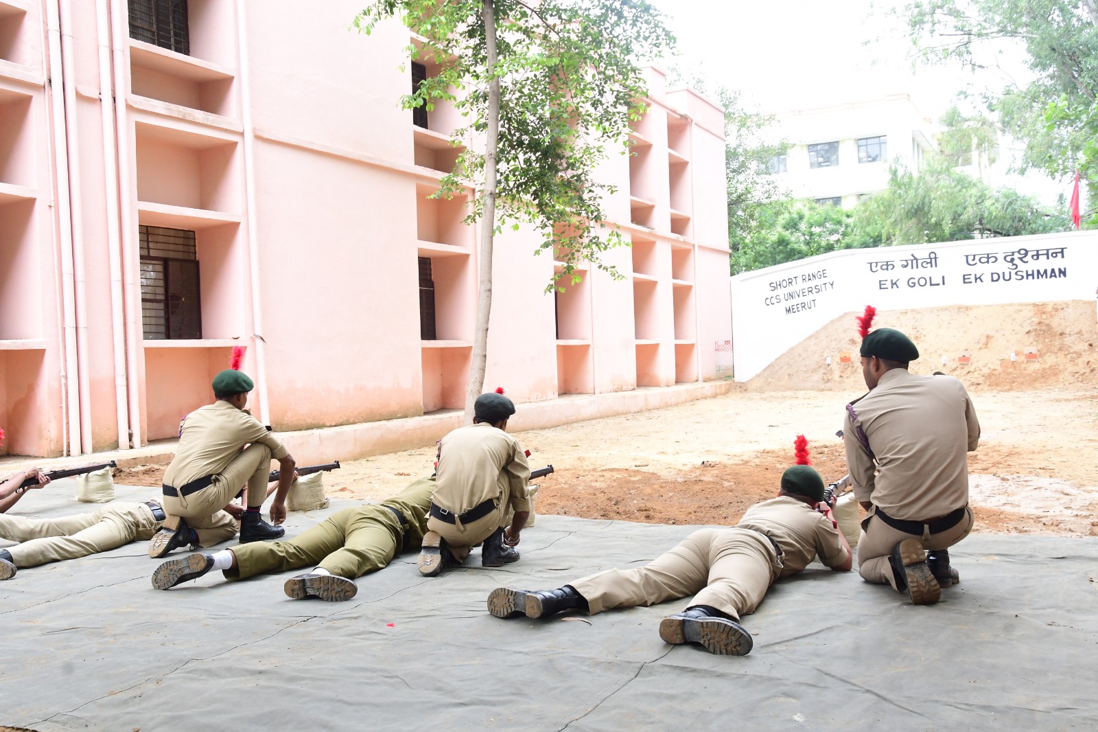 Chaudhary Charan Singh University, Meerut, hosts a well-established and vibrant National Cadet Corps (NCC) unit, functioning under the Government Funded Scheme and affiliated with the 71 UP Battalion NCC, Meerut. The unit operates under the Mixed NCC Unit concept and offers 54 vacancies under the Senior Division/Wing (Army Wing), with 33% of the seats reserved for girl cadets. Established in 2020, the unit has been consistently nurturing and training cadets, with one or more cadets representing the university at the prestigious Republic Day Camp (RDC) each year.
